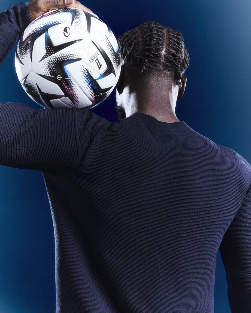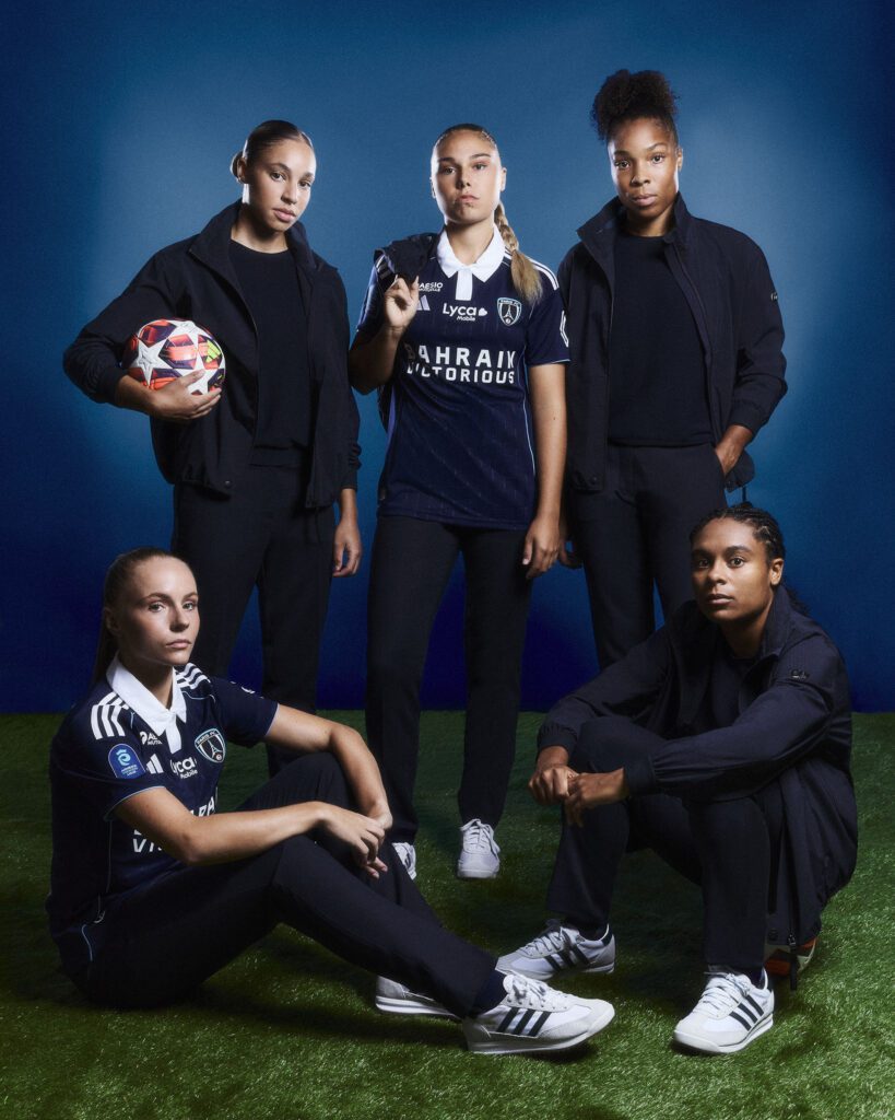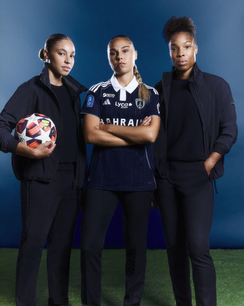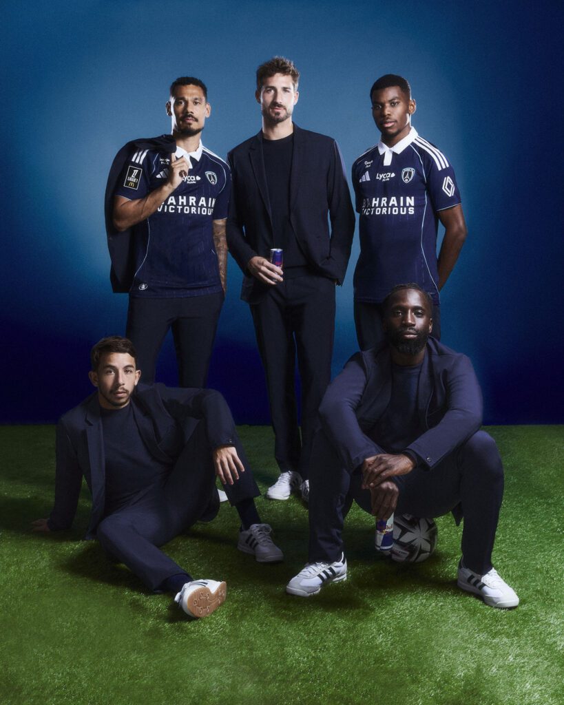 For Paris FC, the creative direction builds on the established AlphaTauri x Football aesthetic, but with a darker, more cinematic twist. The deep blue backdrop reflects both the club’s colors and the moody sophistication of Paris itself.