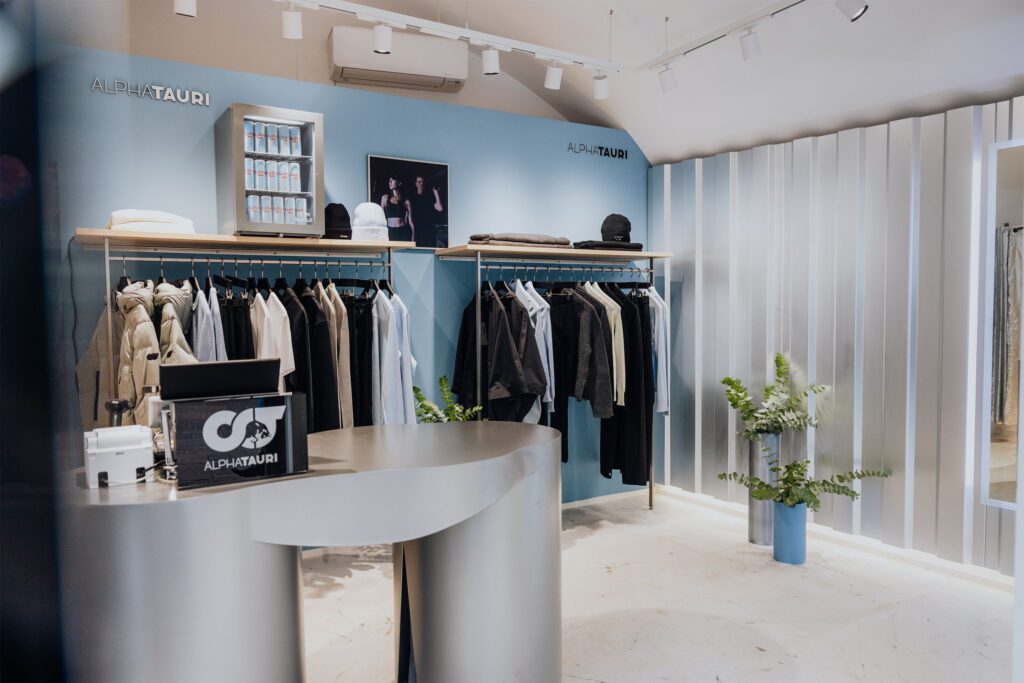 We designed this temporary retail space to merge AlphaTauri with the energy of Red Bull Zero Edition. The concept centered around material contrasts: brushed aluminum, mirrored surfaces, Austrian wood and a gradient of cool blues created an atmosphere that felt both technical and calm.